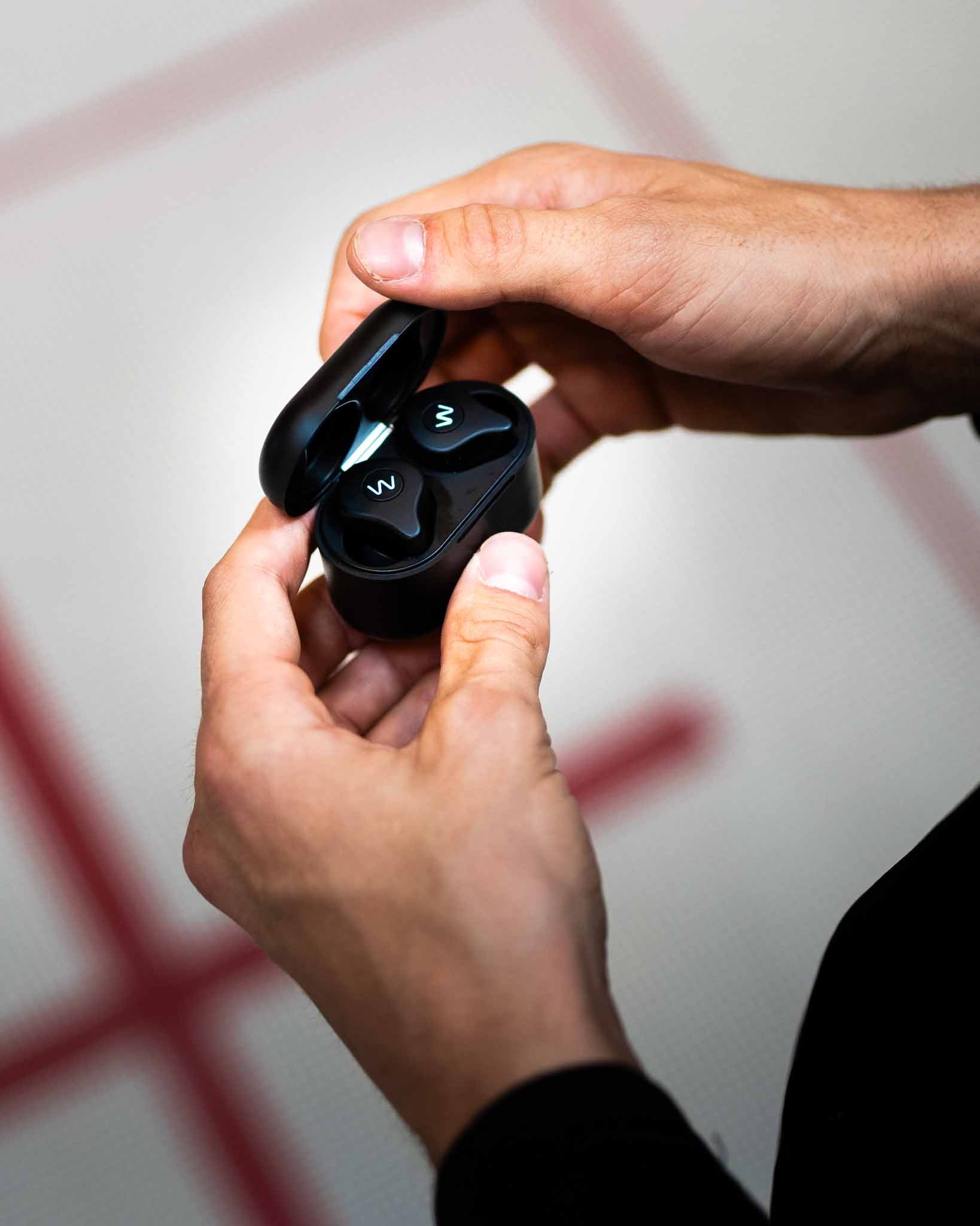 Hvis du oplever at en af vores modeller, som er kompatibel med vores Wavell Connect app, ikke forbinder automatisk til appen, og blot står og tænker, skyldes det at høretelefonerne er i dvale tilstand. Alt du skal gøre for at "vække" dem er, at trykke 2-4 gange på enten den højre eller venstre høretelefon. Så forbinder de automatisk med det samme igen.
