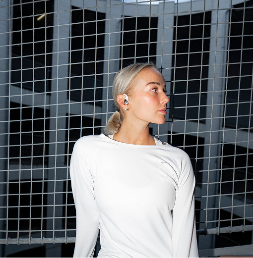 Open-ear designet giver dig fuld opmærksomhed på dine omgivelser, så du kan være opmærksom i trafikken og kontrollere din vejrtrækning under træning.
