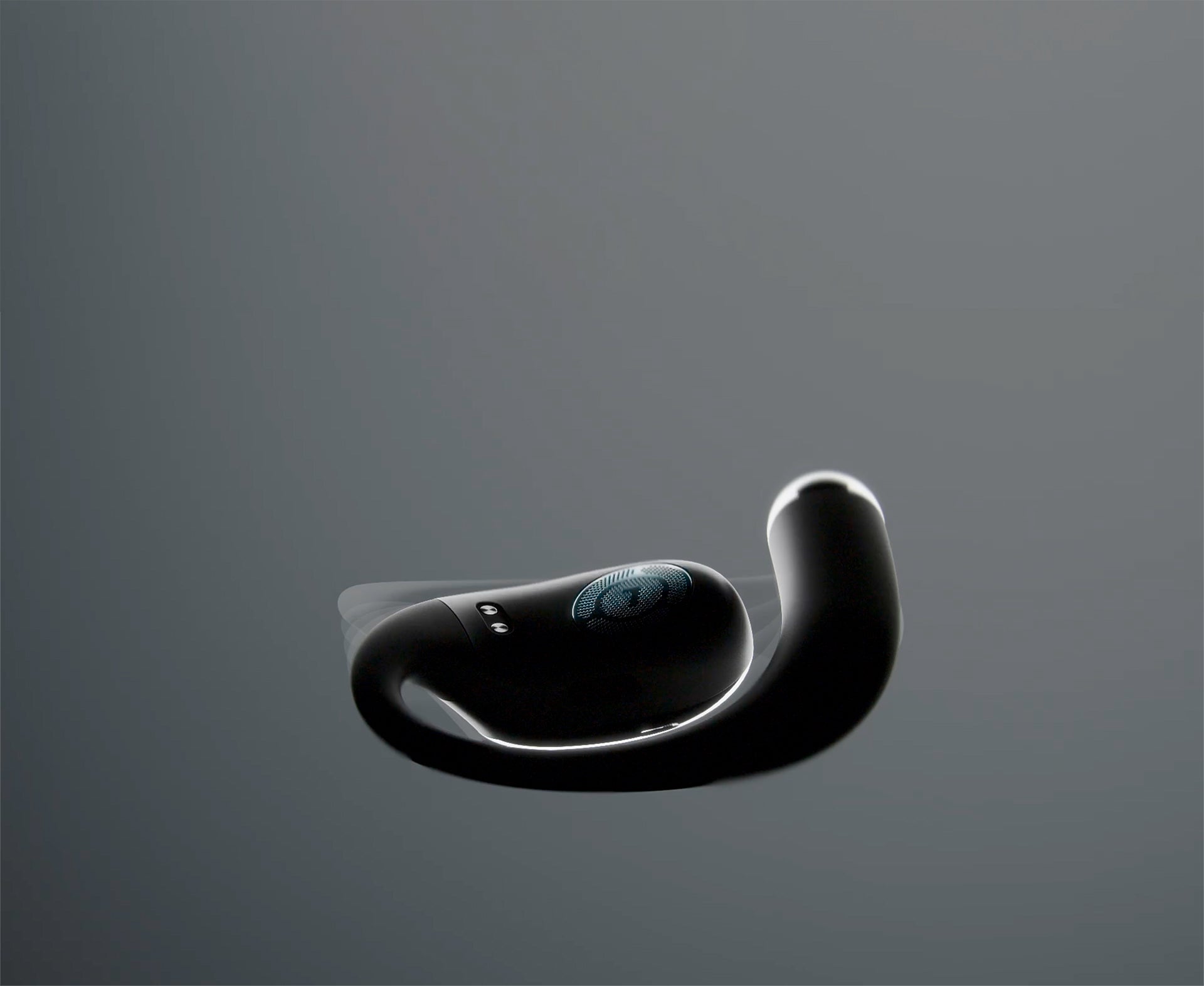 Med open-ear designet hviler høretelefonerne uden på øret og giver en naturlig lyd, så du kan høre trafik, træningsmakker eller omgivelser, mens du lytter til musik.