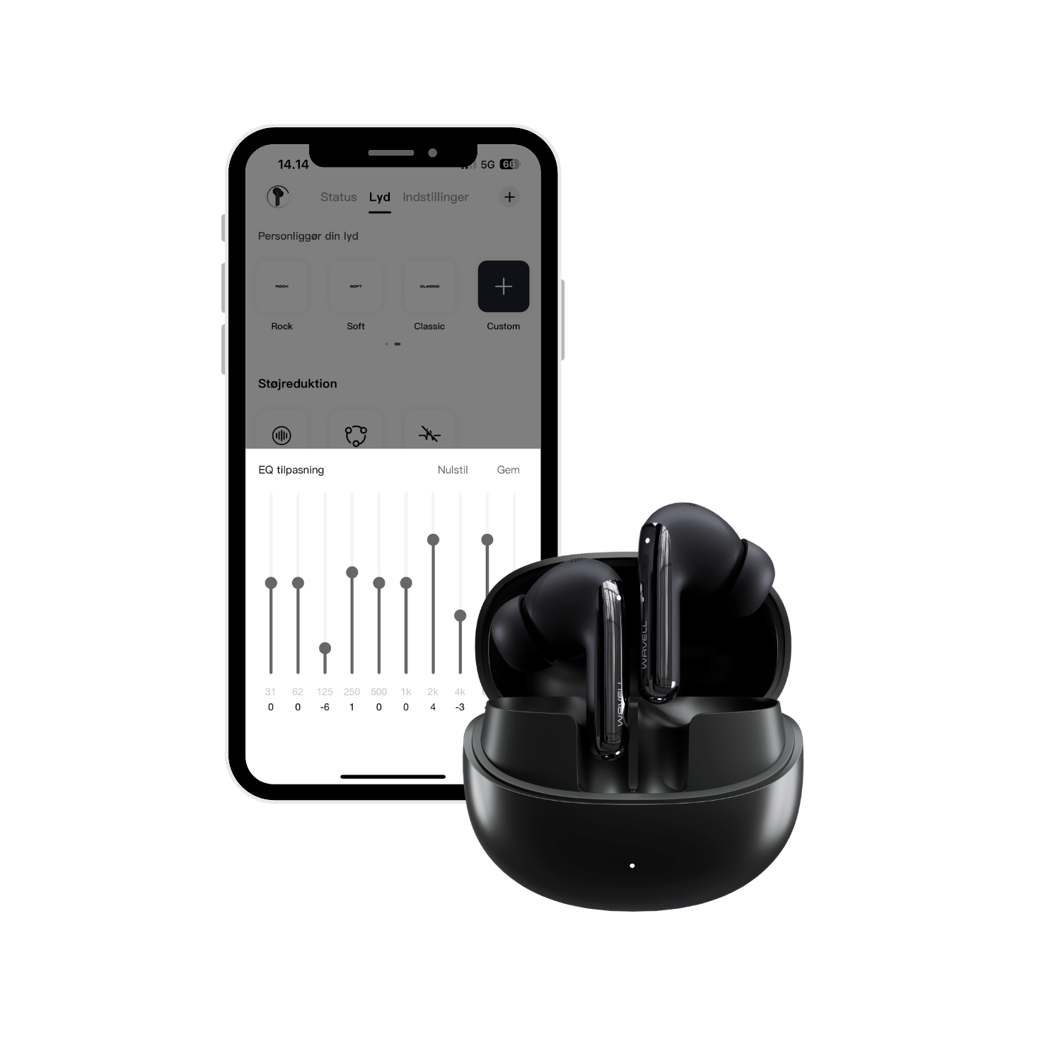 Hent Wavell Connect appen og få en tilpasset lydoplevelse. Du kan blandt andet lave dine egne EQ-indstillinger, aktivere In-ear Detection, styre Bluetooth multipoint-forbindelser og tilpasse støjreduktion efter dine præferencer. Du kan også tilpasse touchfunktionerne, anvende Sleep mode eller aktivere Gaming mode, som sikrer kortere forsinkelse på lyden. Gør dine Wavell 4 Pro unikke for dig med få klik.